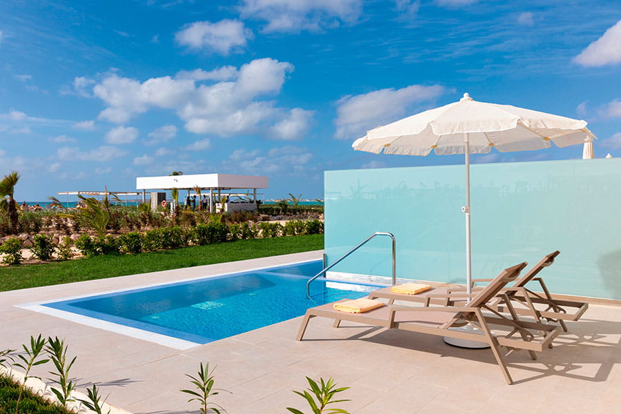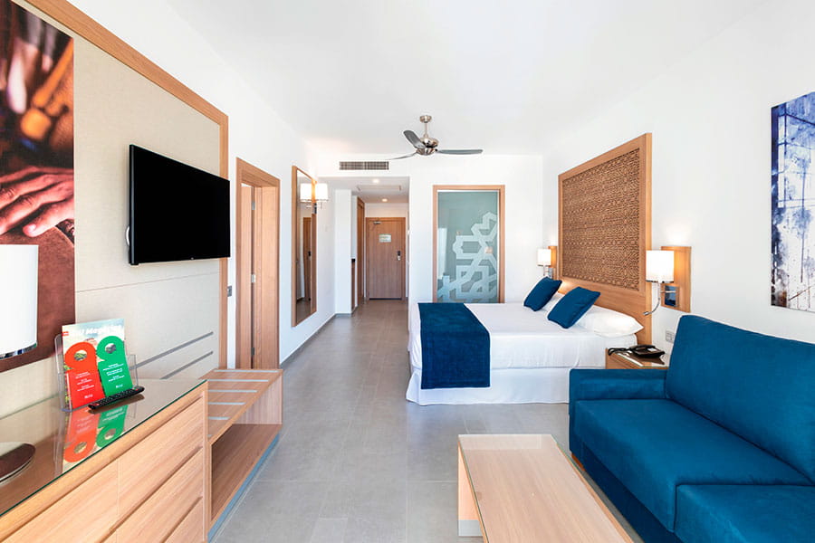 Las más de 500 habitaciones del Hotel Riu Palace Boavista han sido especialmente diseñadas para ofrecerte el máximo confort. Todas ellas están equipadas con caja fuerte, minibar, dispensadores de bebidas y balcón o terraza. Además, si quieres disfrutar de una estancia en Praia das Dunas con todo lujo de detalles, ponemos a tu disposición las habitaciones doble con Swim-up solo adultos, con piscina privada, ubicadas en las diferentes villas de los jardines del hotel.