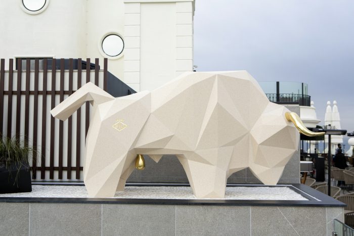 13 April, 2022You still don’t know who Atrevido is? Atrevido (meaning “bold” or “daring”) is the name of the now-famous white bull located on the 360º terrace of the Riu Plaza España Hotel. It has been several months since his arrival and we have finally given him a name! If you don’t know him yet, we encourage you to come and have an appetiser on our terrace and find this sculpture that presides over one of the corners of the most coveted terrace in Madrid.